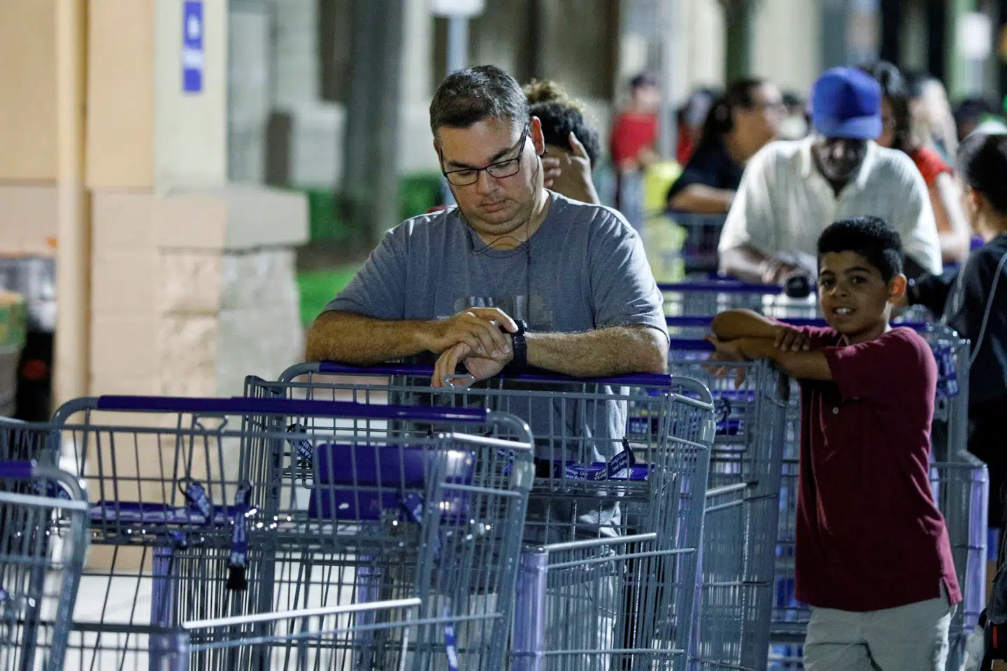 Tomme hylder i supermarkeder, fyldte tanktationer samt sandsække langs døre og vinduer.