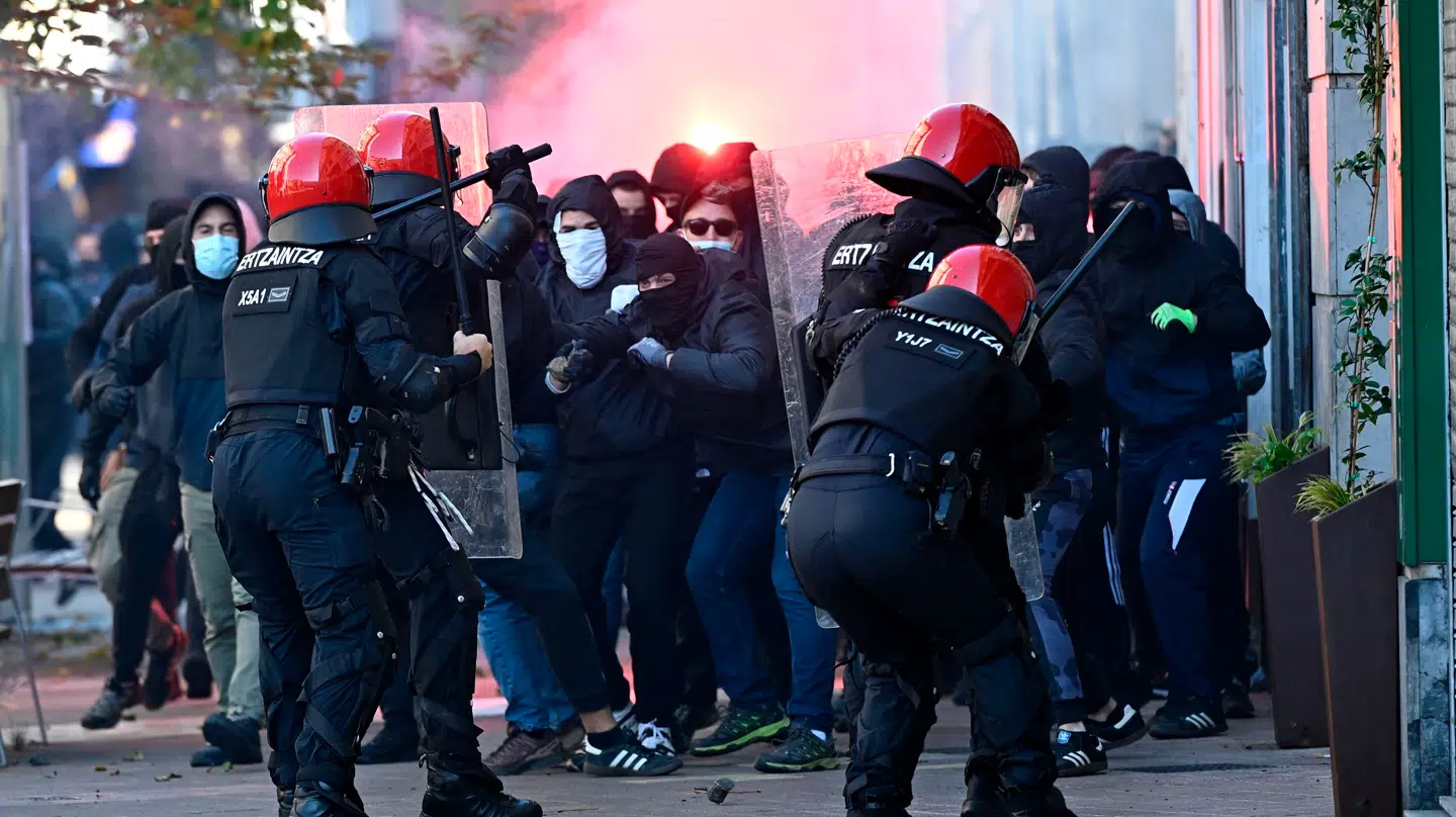 Optøjerne førte til, at det baskiske politi anholdte 17 personer mistænkt for at have forstyrret den offentlige orden, oplyser det ifølge AFP.