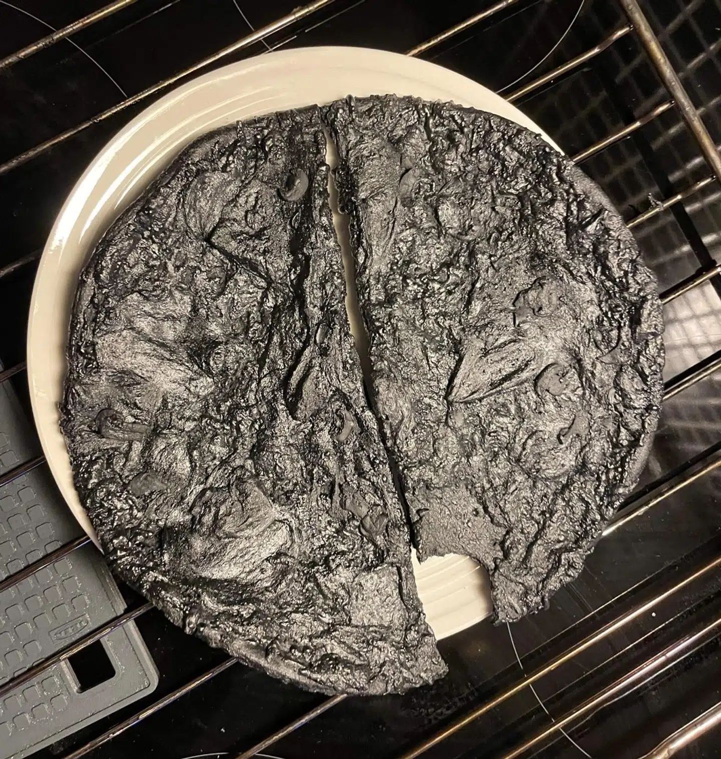 Som en kvik kommentar til opslaget bemærker, ser det dog ud til, at der alligevel var én, som blev fristet til at tage en bid af den forkullede pizza.