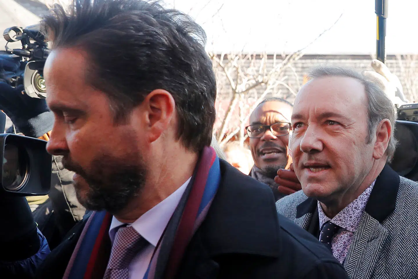 Den 59-årige 'House of Cards'-stjerne måtte kæmpe sig igennem en horde af journalister og fotografer, før han kunne entrere retssalen.