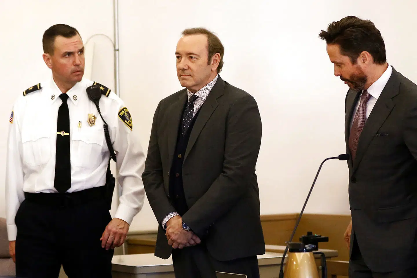 På billederne fra retsmødet er Kevin Spacey ganske udtryksløs. I stedet lod han sin advokat føre ordet.