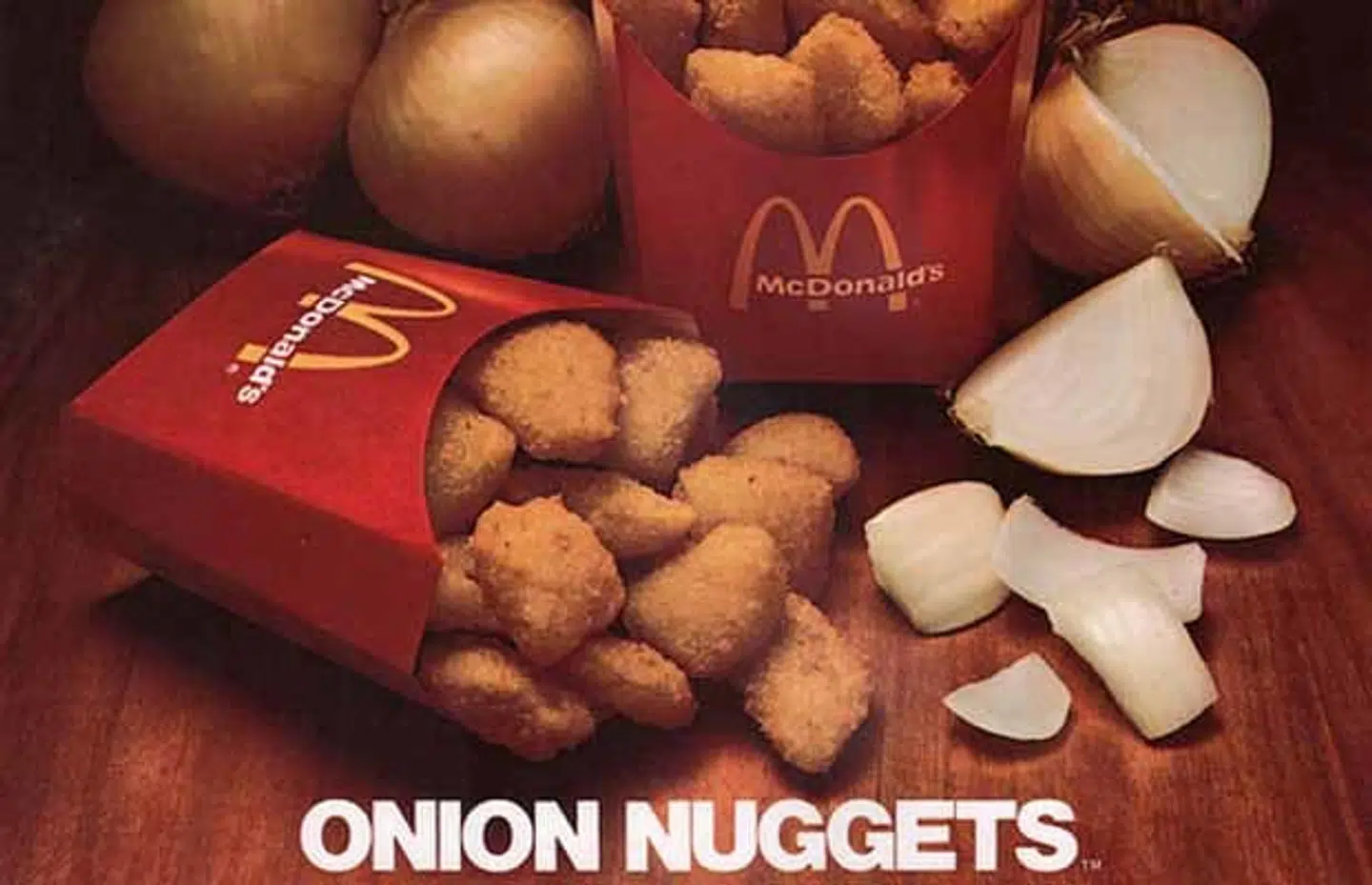 De fleste kender til Chicken McNuggets og Onion Rings. En kort overgang forsøgte McDonald's at kombinere de to varianter, men kunderne var ikke begejstrede - og Onion nuggets forsvandt ud i glemslen igen.
