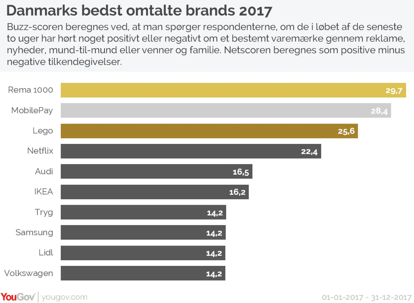 Det viser en ny undersøgelse fra Yougovs Brandindex, der sammenligner mere end 300 varemærker og ser på, hvilke der har fået mest positiv omtale.