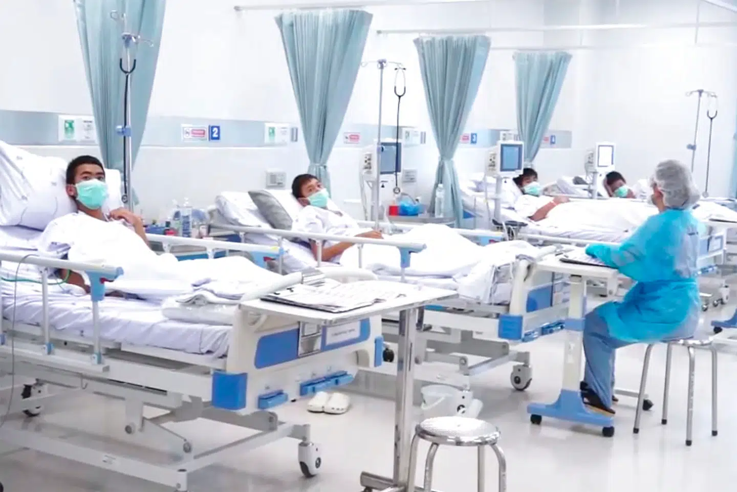 Alle drengene er lige nu indlagt på Prachanukroh hospitalet i provinshovedstaden Chiang Rai, hvor de skal være indlagt i en uges tid, så lægerne kan overvåge deres helbred. Indtil videre er de blevet vaccineret for hundegalskab og stivkrampe. Drengene har solbriller på hele tiden for at beskytte øjnene mod direkte lys. Da de har været indespærret i en mørk grotte i så lang tid, skal deres øjne vænne sig til dagslyset igen.
