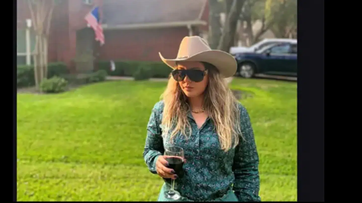 I dem kan man se flere billeder, hun har sendt, hvor hun er iført cowboyhat og drikker rødvin.