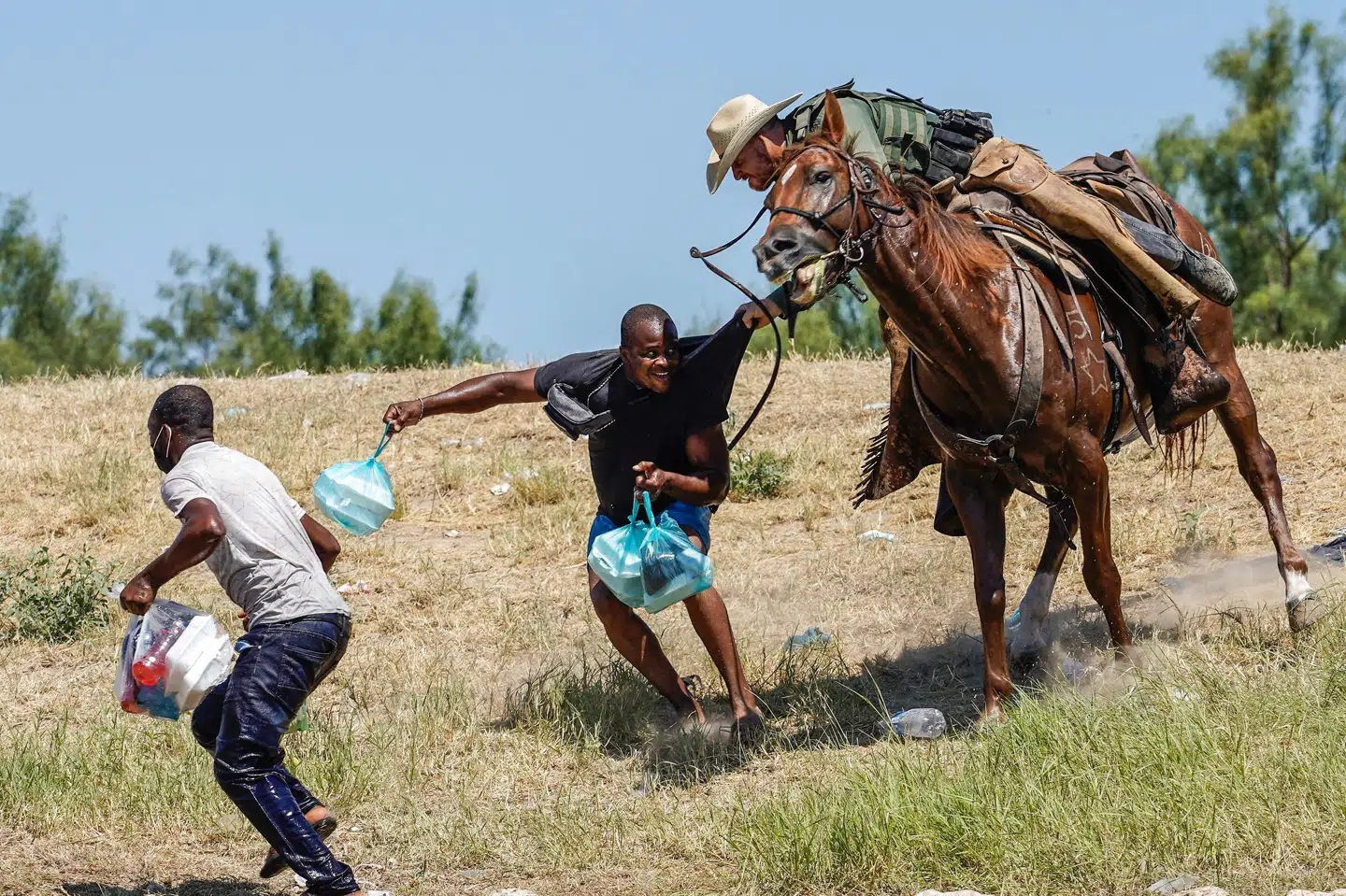 »Nogle af de haitianske mænd begyndte at løbe og komme forbi hestene, og det var dér, der hele skete,« fortæller fotografen og slår fast om grænsebetjentens brug af tøjlerne:
