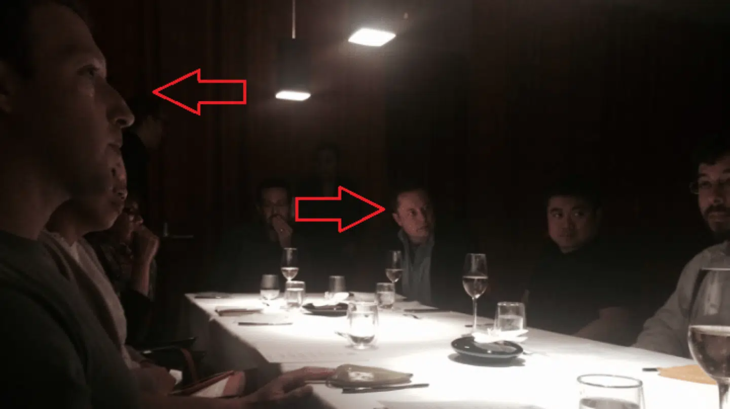 På billedet, som du kan se ovenfor, sidder både Zuckerberg og Musk i hvert fald rundt om bordet på, hvad der ligner, en restaurant med vin i glasset og deltager aktivt i samtalerne med de øvrige gæster.