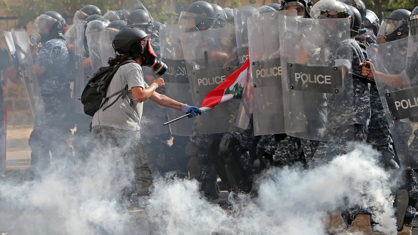 Specialudrustet politi anvendte lørdag tåregas mod demonstranter i Beirut. Det skete, da de forsøgte at bryde gennem en barriere omkring landets parlament.
