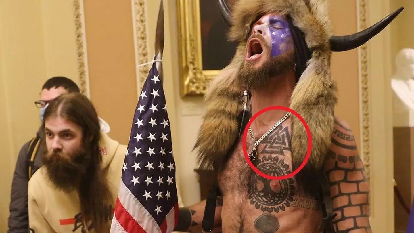 Den selvudnævnte ‘Q-Shaman’ er en af agitatorerne for den højreradikale konspirationsteori QAnon, der beskriver et påstået hemmeligt plot orkestreret af den ‘dybe stat’ bestående af blandt andre Demokraternes topfigurer og Bill Gates mod Donald Trump.