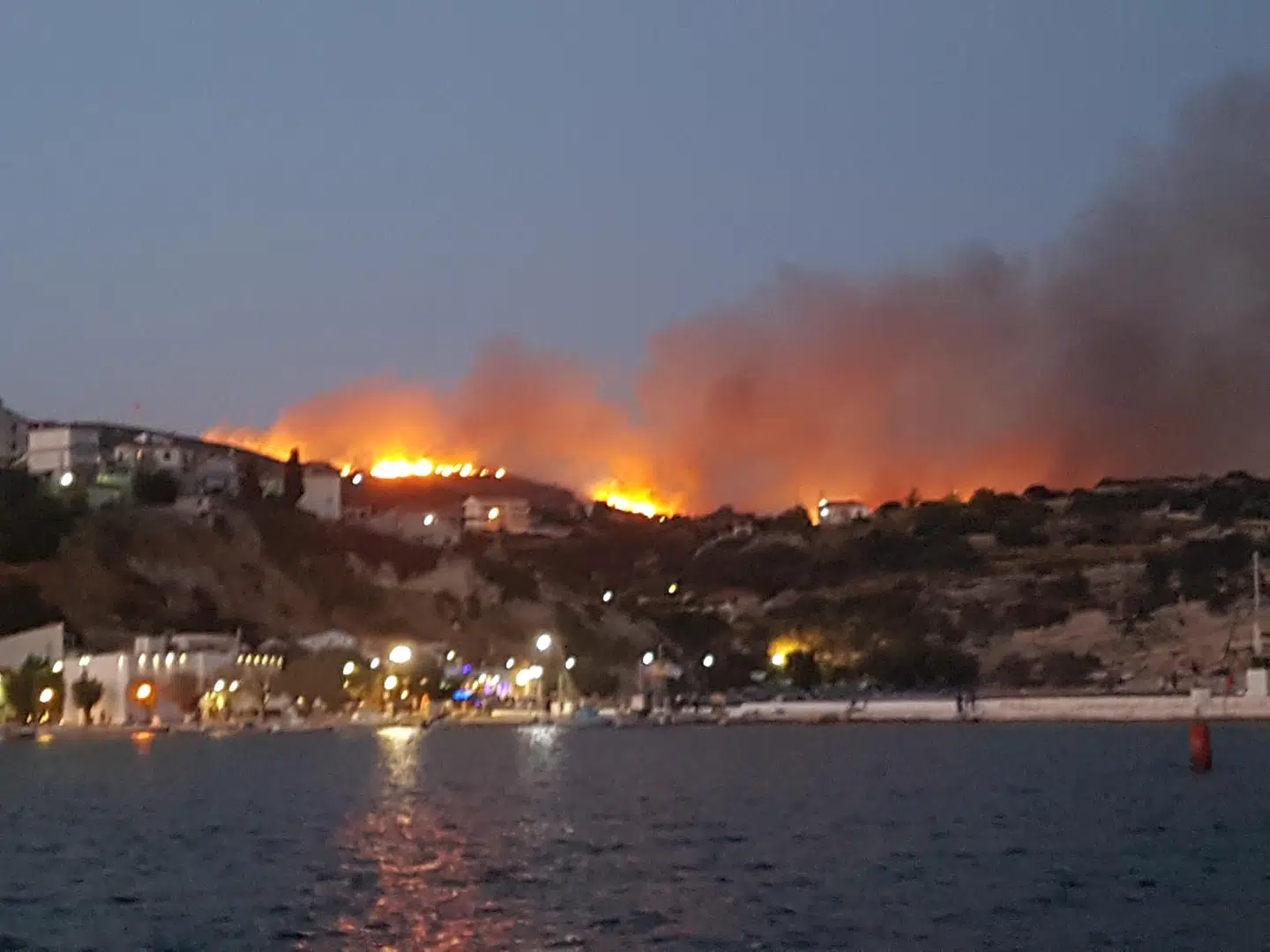 Lørdag aften måtte flere rejseselskaber evakuere deres gæster fra hoteller i byen Pythagorion, fordi flammerne fra en nærliggende skovbrand nærme sig byen.