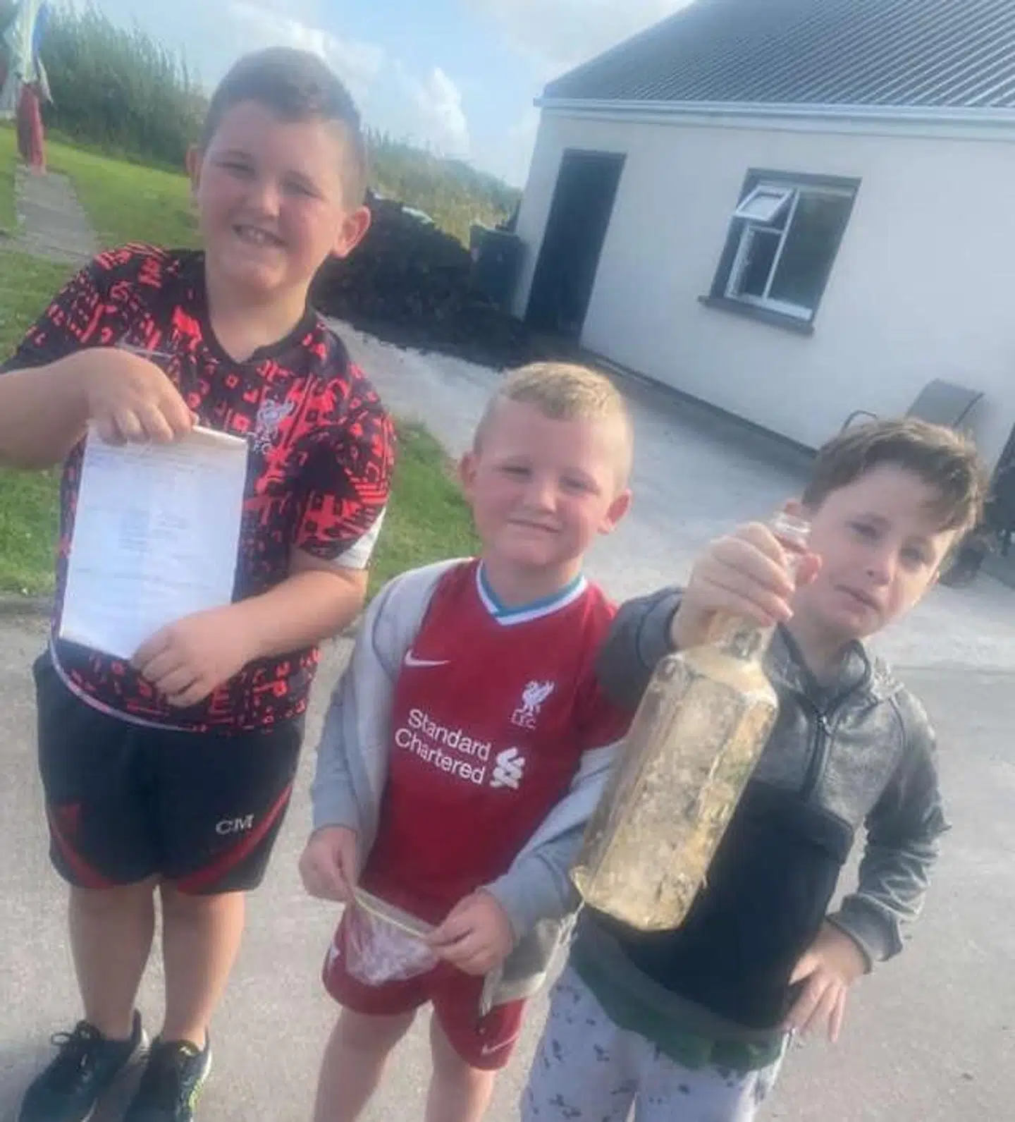 Hun var dog ikke ene om at finde sådan en flaske i løbet af de seneste uger. For de unge brødre Oisín O’Doherty og Eoghan O’Doherty var sammen med deres fætter Odhran O’Sullivan på gåtur ved Glen Pier i Irland, da de lagde mærke til en flaske, der lå i spænd mellem nogle klipper langs kysten.