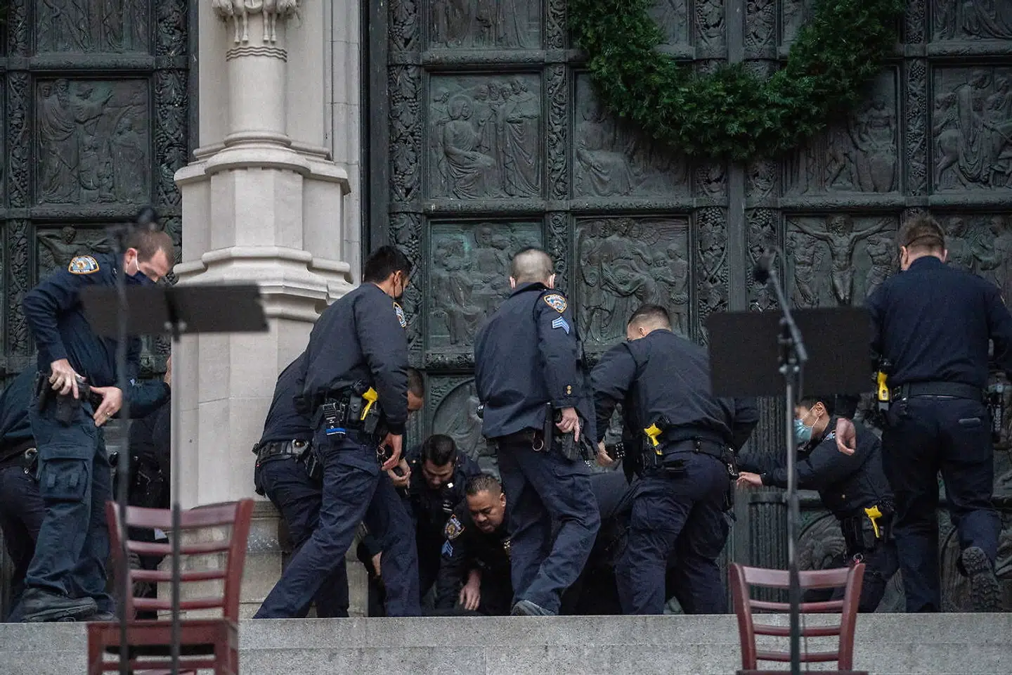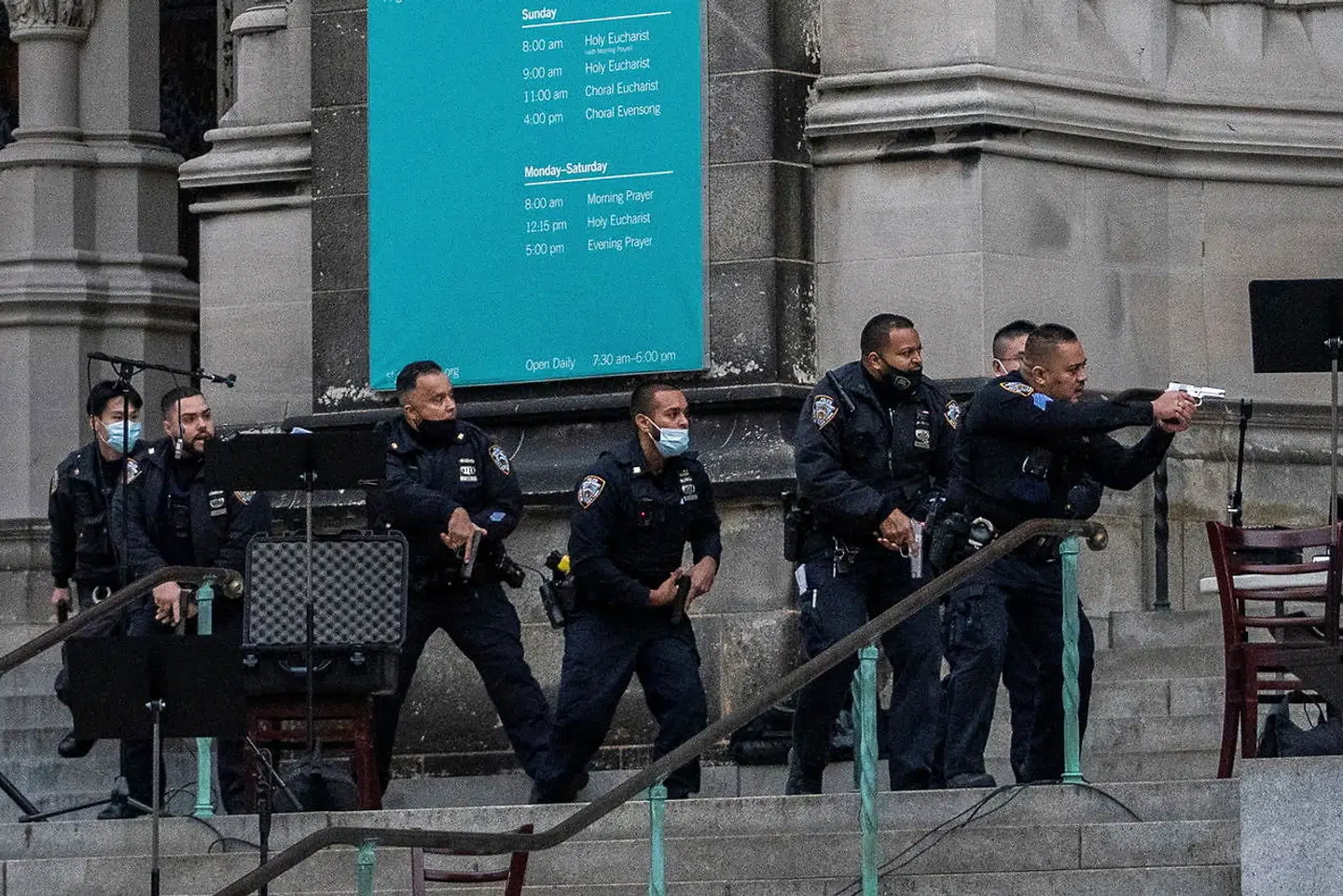 Betjente fra New York Police Department var i forvejen til stede ved kirken, da skyderiet brød ud, og de kunne derfor hurtigt gribe ind, har politikommissær Dermot Shea fortalt på et efterfølgende pressemøde.