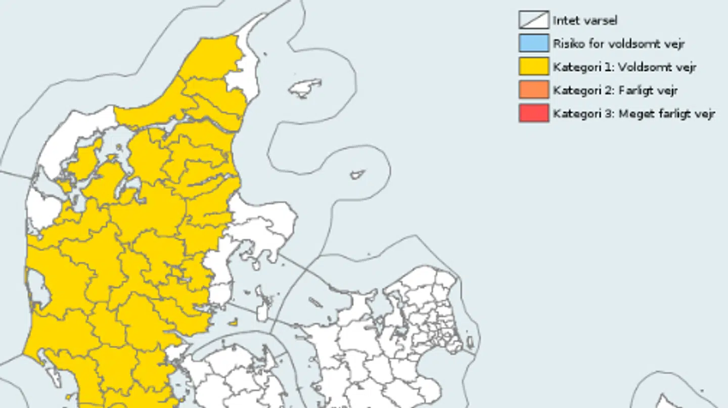 Varslet gælder fra tirsdag klokken 01 til tirsdag klokken 8.