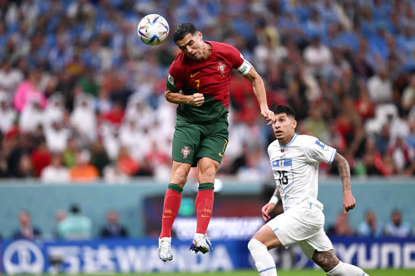 Uruguay var klart farligst, men Portugal sled og slæbte, og til sidst fremprovokerede Bruno Fernandes et straffespark, da han sendte bolden ind på hånden af Jose Maria Gimenez.